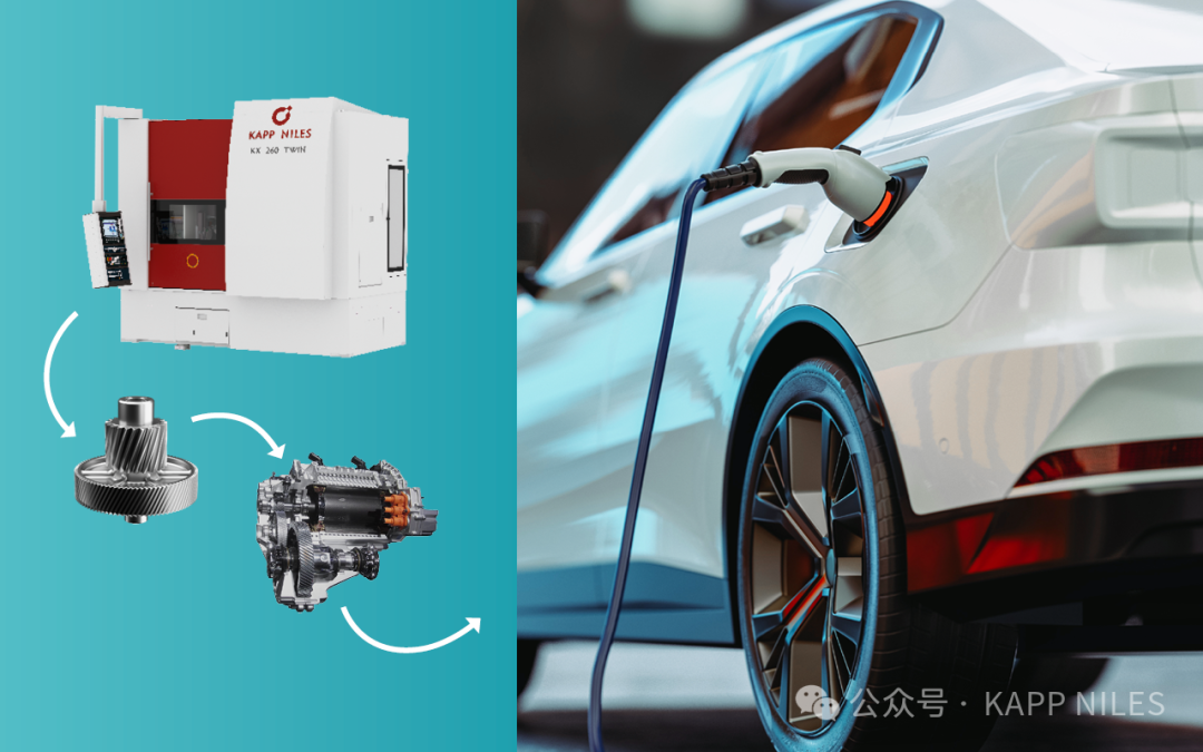 The majority of electric cars use simple, non-shiftable transmissions consisting of input shaft, intermediate gear, intermediate shaft and differential gear. The requirements for these gears are very high due to the extremely wide speed and torque range. KAPP NILES offers the answer for reliable machining of these workpieces with highest quality.